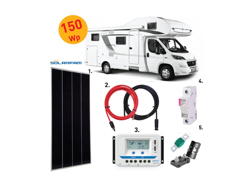 Optimálně navržený solární systém 150Wp pro karavany a obytné vozy. Systém pracuje s napětím baterie 12V. Jedná se o velmi oblíbenou sestavu, díky své přijatelné ceně.