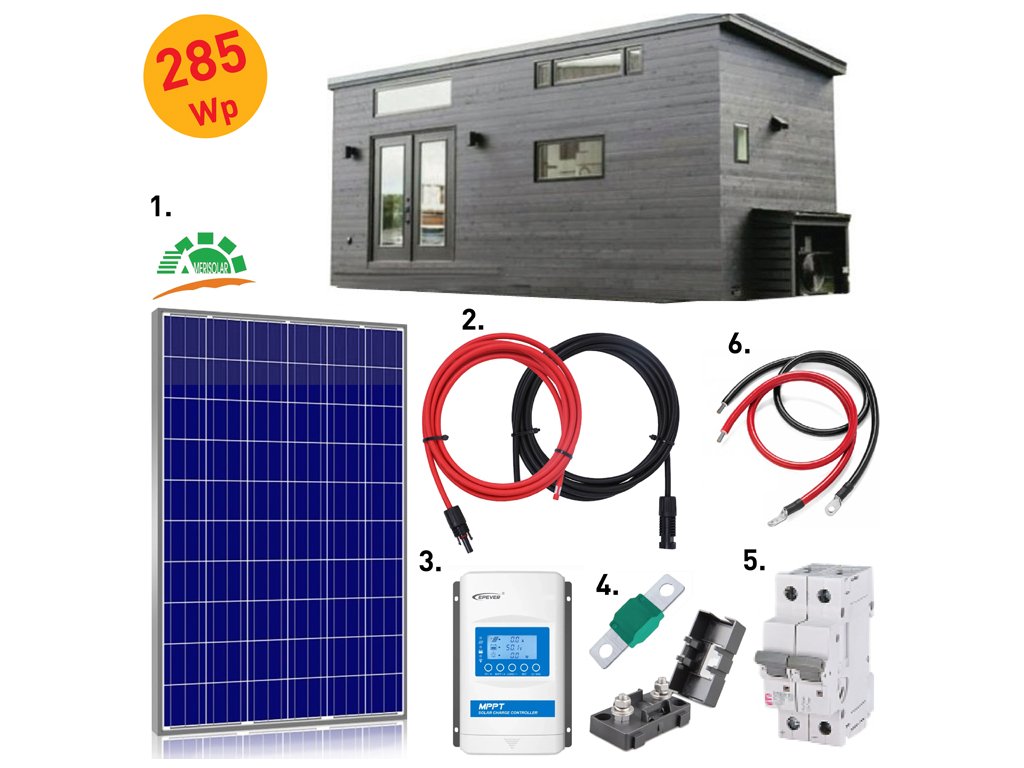 Optimálně navržený solární systém 285Wp. Systém pracuje s napětím baterie 12V. Jedná se o jeden z nejčastěji prodávaných a používaných solárních systémů.
