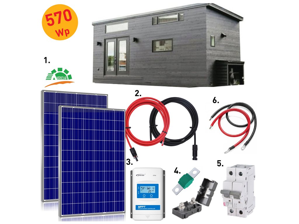 Optimálně navržený solární systém 570Wp (2x285Wp). Systém pracuje s napětím baterie 12V. Jedná se o velmi oblíbený a jeden z nejčastěji prodávaných solárních systémů, díky svému výkonu a kvalitě.