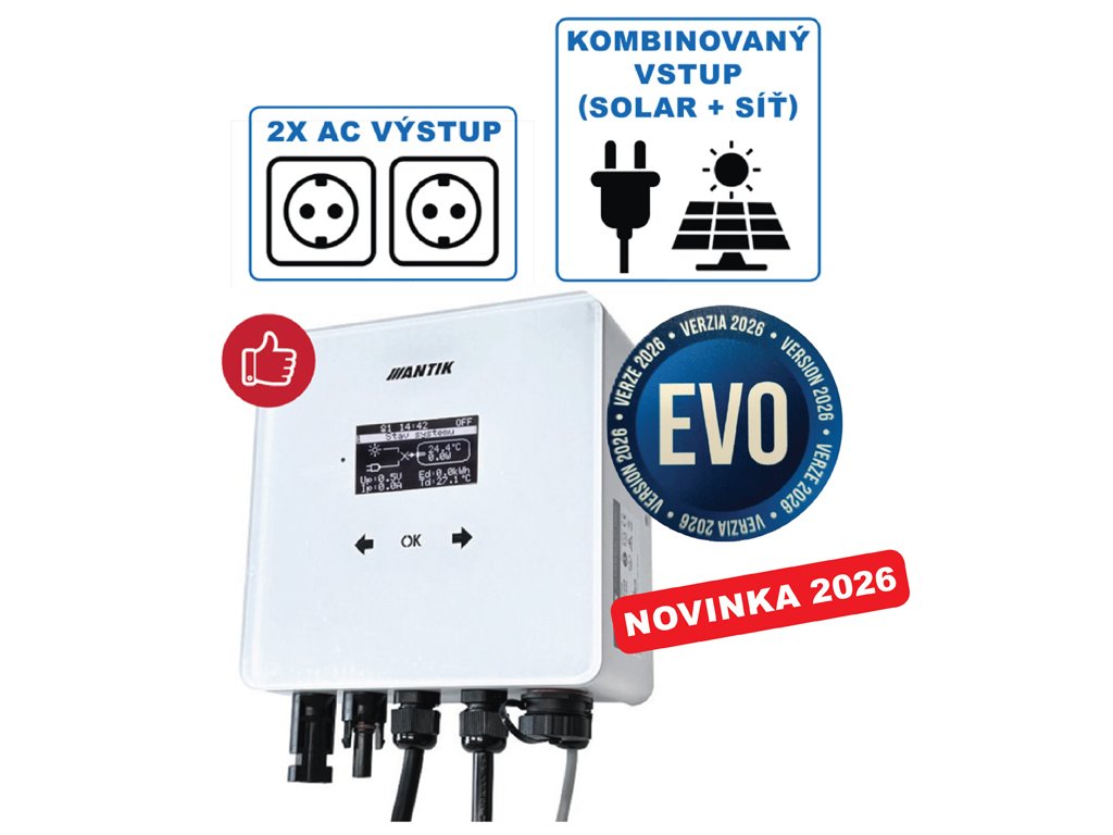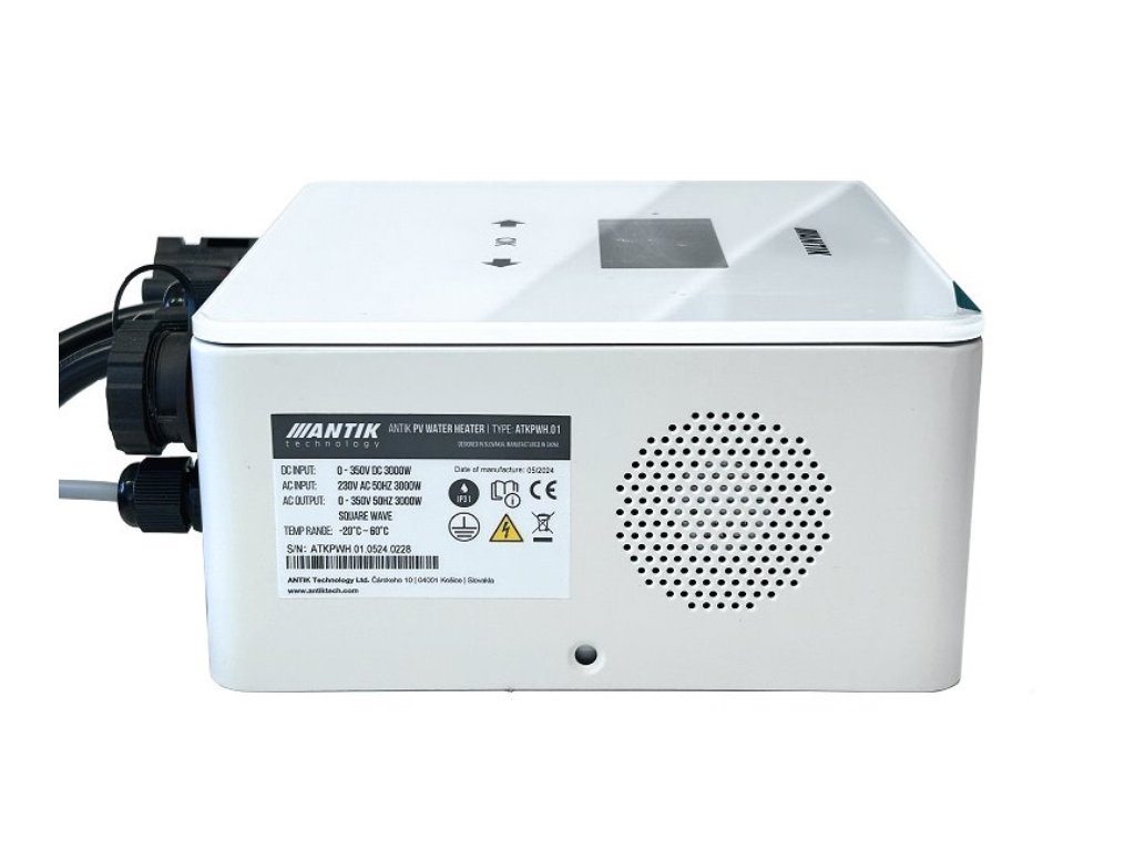 Měnič pro ohřívač vody ANTIK Smart DC je navržen pro přímé připojení k stejnosměrnému výstupu fotovoltaických panelů. Nevyžaduje připojení přes síťový měnič ani k hlavnímu rozvaděči domu.