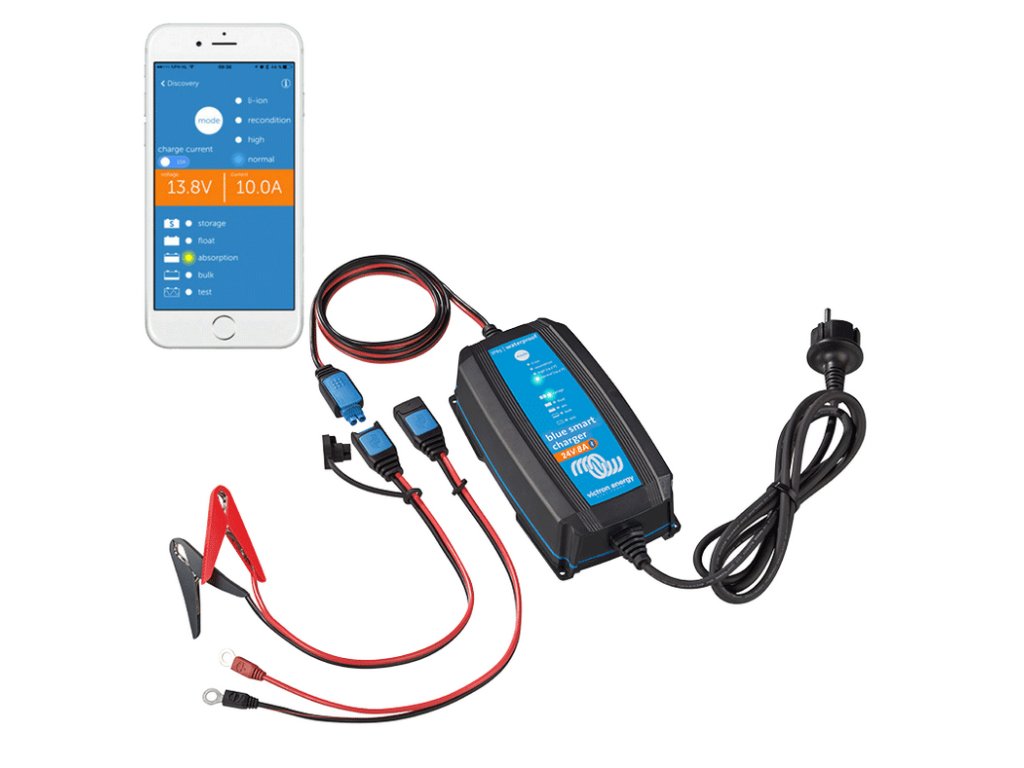 Nabíječka Blue Power Charger používá speciální nabíjecí algoritmus pro Li-ion (LiFePO4) baterie, s automatickým resetem ochrany podpětí Li-ion baterií.