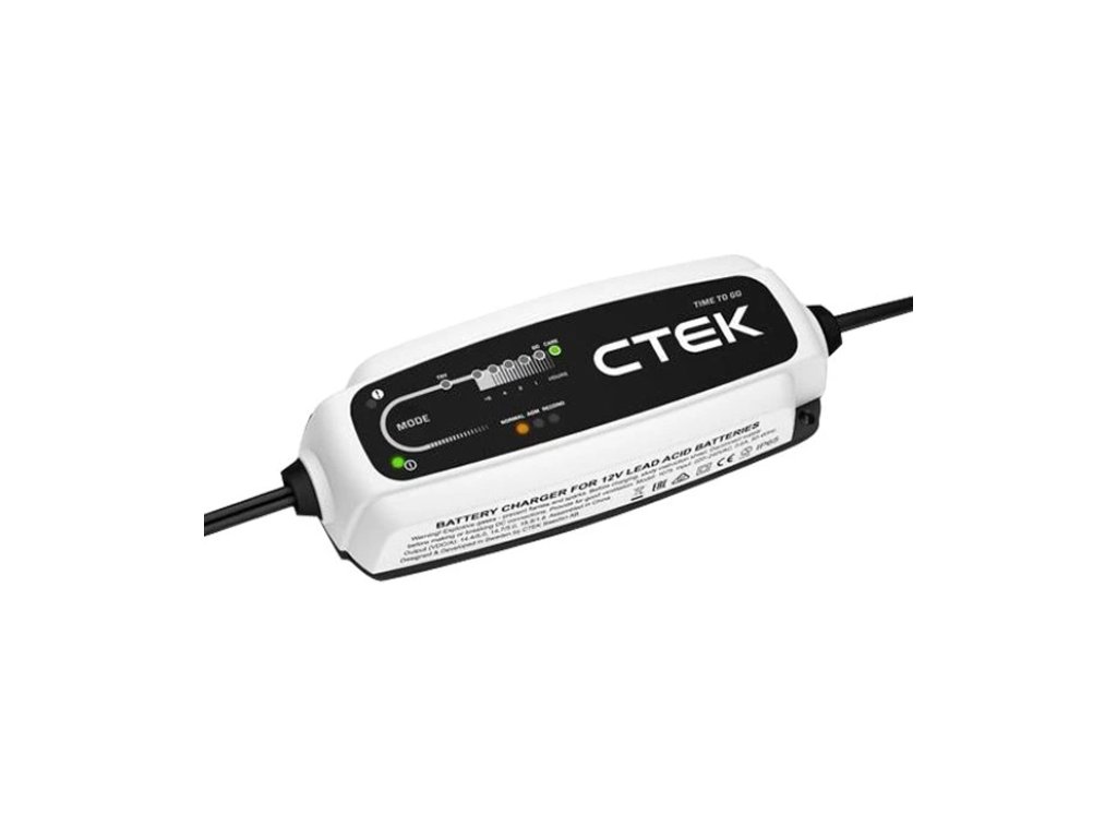 CTEK CT5 TIME TO GO je plně automatická nabíječka autobaterií, která ukazuje, kdy bude Vaše baterie nabitá. Skupina sedmi LED indikátorů ukazuje různé úrovně nabíjení a dobu do nabití baterie. LED diody též zobrazují informaci, kdy je možno bezpečně zkusit nastartovat i kdy bude baterie plně nabita. Patentovaný algoritmus totiž umožňuje zhodnotit stupeň vybití a též odhadnout velikost nabíjeného akumulátoru. Integrované teplotní čidlo dále kompenzuje nabíjecí napětí dle okolní teploty. Stejně jako u ostatních nabíječek je zde kladen důraz na jednoduchost ovládání a bezpečnost.