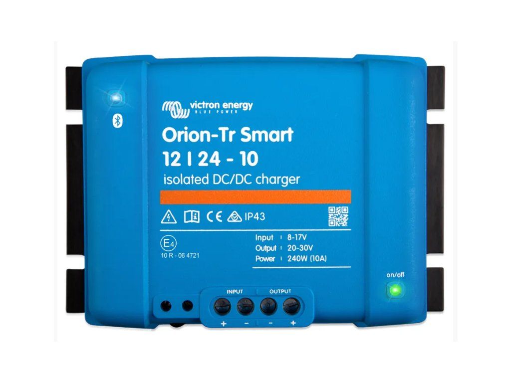 Nabíječka Victron Energy Orion-Tr Smart DC-DC je profesionální DC-DC adaptivní třístupňovou nabíječkou se zabudovanou funkcí Bluetooth. Je určena pro použití v duálních bateriových systémech ve vozidlech nebo na lodích, kde se k nabití servisní baterie používají (inteligentní) alternátor a startovací baterie. Jednotku lze monitorovat a programovat přes Bluetooth a ovládat dálkově pomocí dálkového spínače zapnutí/vypnutí. Nabíječka je také vybavena mechanismem detekce chodu motoru.