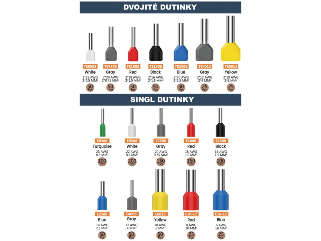 Lisovací dutinky 0,5-16mm² - sada 1200ks v plastovém boxu