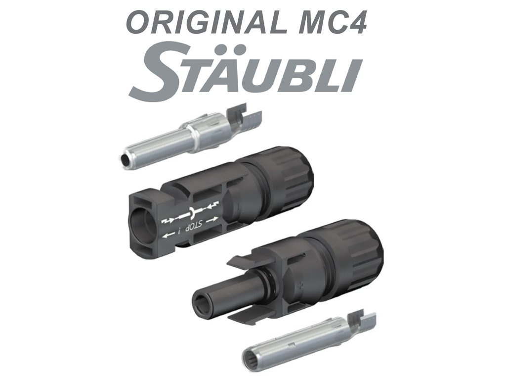Solární kabel s průřezem 6mm2 a celkovou délkou 12m+12. Na koncích kabelu (na jedné straně) jsou nalisovány originální MC4 Stäubli konektory.